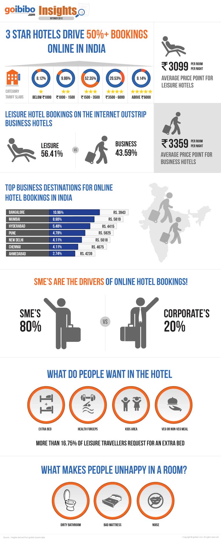 Regarding Hotels, 3 star hotels drive 50%+ bookings online in India and many people prefer to have extra beds and kids area.