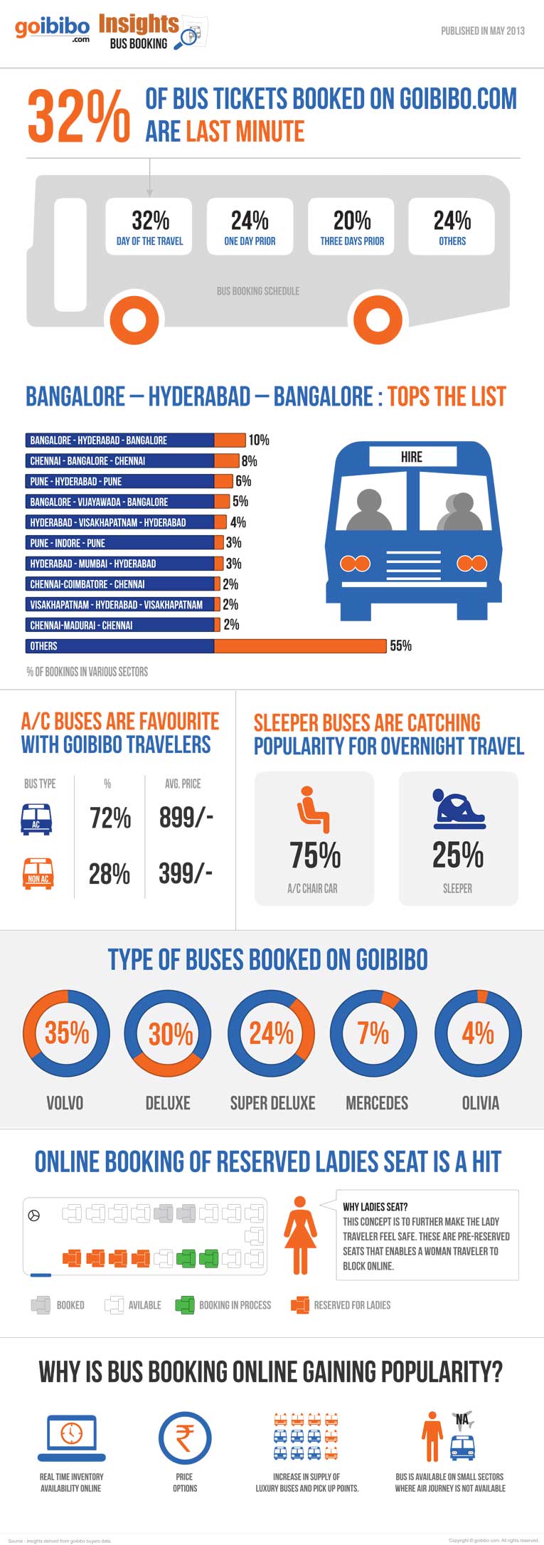 GoIbibo has published while ago a few travel facts about their users which gives how frequently they book tickets, from where to where, which buses they prefer and many more.