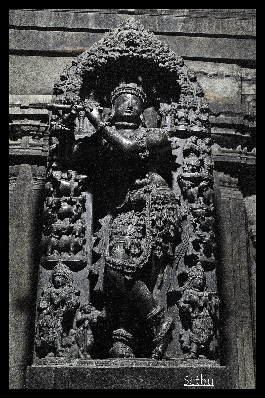Inside the temple, you can see Venugopala – Lord Krishna playing the flute and the cows listening to the music.