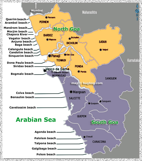 Here is a map of beaches in North Goa and South Goa.